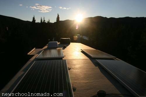 The panels and charge controllers have held up great since our journey to Alaska. We are now looking forward to optimizing the system further so we can enjoy more ‘wild camping’ throughout the western United States. Future upgrades to the system will be to replace the two gell cell batteries with two more Trojan T-105’s so that we can run it as a single bank. Replace our 1000w inverter with a 3000w “whole house” model. Add 400w more PV panels to better accommodate my large screen iMac.